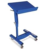 | ✚✚✚ VESTIL 200-Lb. Capacity Work Positioner - 28–38"H Platform Telescoping support post locks in place with a snap button mechanism when platform is at a comfortable working height. Tilting platform includes a 2"H platform lip. Platform tilt: 45°. Offset platform. All-steel. 31/2" polyurethane swivel casters (2 with brakes). Painted blue base.