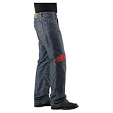 | ✚✚✚ Icon Victory Motorcycle Pant - BLUE/RED 34 Don't be fooled, the new Victory Pant has all the manners of an ambassador but the morals of a pirate. High-performance features with pure moto styling combine to form the epitome of street riding pants. The durable denim chassis, Aramid reinforced knees and hips and breathable ribbed expansion panels are blended specifically for an aggressive riding position. The fit is loose, but the styling is tight. Available with black or red expansion panels.