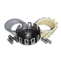 #Performance Clutch Kits take the clutch pack kits one step further by including a Wiseco forged clutch basket and new rubber cushion. Wiseco forged baskets are tougher and stronger than stock, and achieve higher fatigue properties than any other clutch on the market. The hard coat anodizing wears like iron, and greatly extends the life of the basket against notching. Contains a full set of frictions, steels, and clutch springs made from premium grade materials. Refresh your worn out clutch and notched basket with the ultimate in high quality Wiseco clutch components. Fits: Yamaha YZ250F 2008.