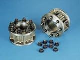 | ✚✚✚ Front Dual Wheel Adapters (2001-2002 Dodge Truck and Van w/ Rear Disc Brakes) The adapters are designed to mount directly to your existing axle stud requiring no modifications on your part. Simply remove your single wheel and tire and mount the conversion hub in the single wheel's place. The conversion hub will give you the proper spacing and convert the vehicle from a stud piloted to a hub piloted mounting for a dual wheel. The adapters are approximately 3-4" thick depending on vehicle type with 5/8" studs. The conversion kit will come with all the pieces need to complete the job. 100% precision machined from solid steel billets, absolutely NO aluminum. Must use 1984-1998 Ford Dual Wheel with this adapter.